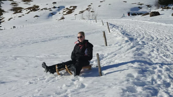Winterspaß für die ganze Familie findet man auch schlitternd bergab auf unseren hauseigenen Rennrodeln.